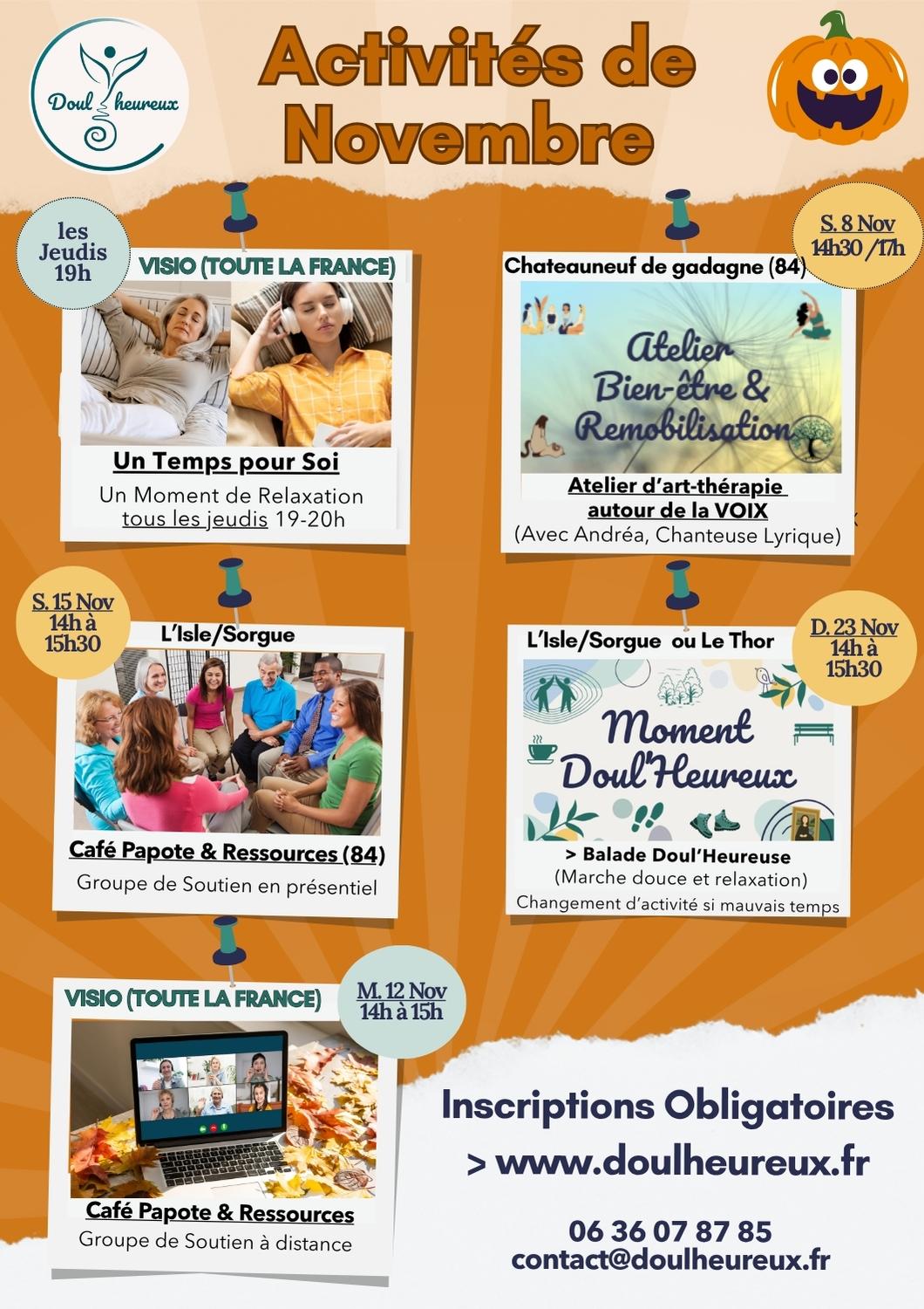✔ Certaines sont gratuites pour les adhérents et avec participation pour les non adhérents (ex. visio relaxation).
