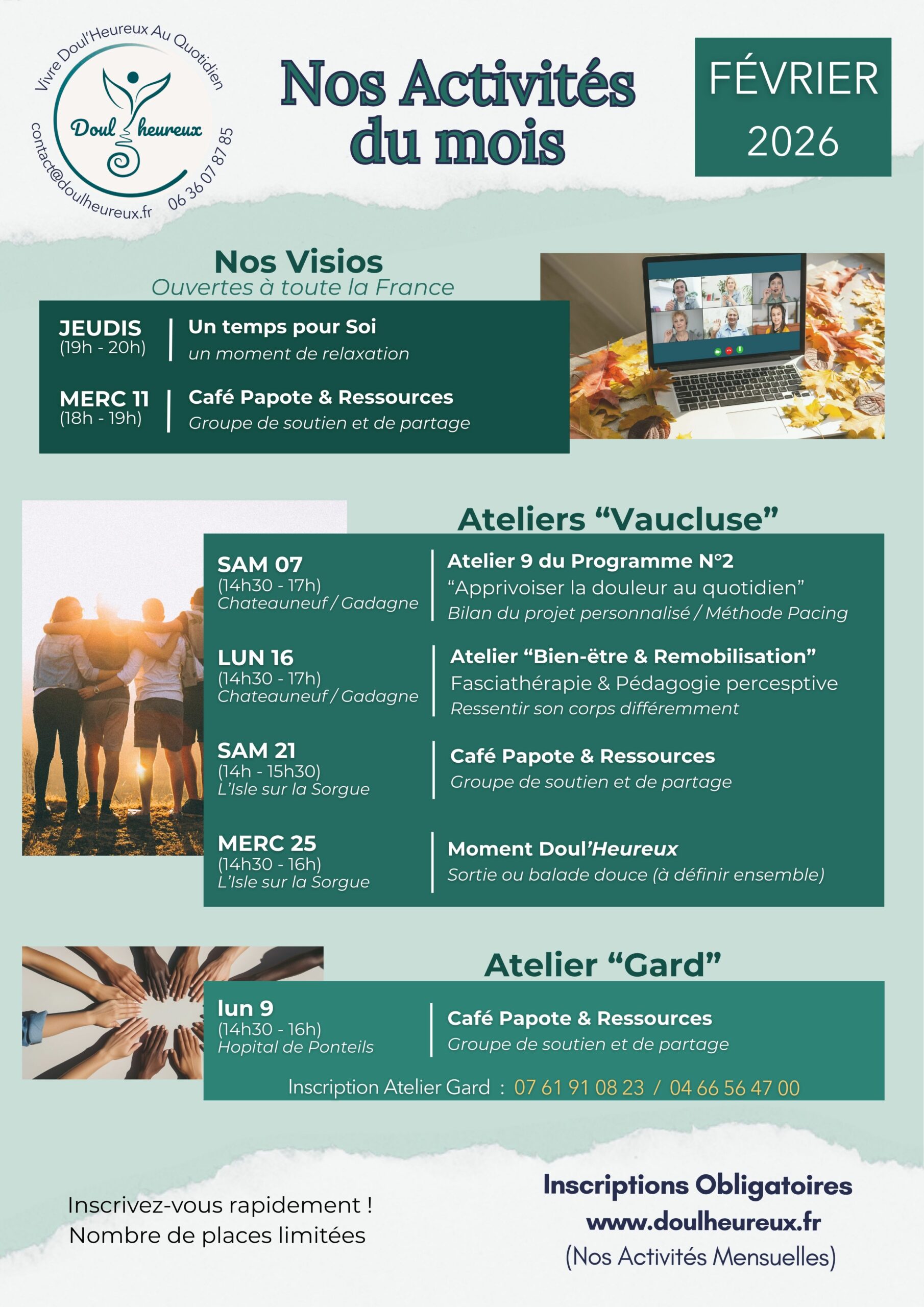 Un moment pour partager, écouter et se soutenir entre personnes concernées par la douleur chronique. Échangez librement, bénéficiez de conseils et avancez ensemble dans un cadre bienveillant.