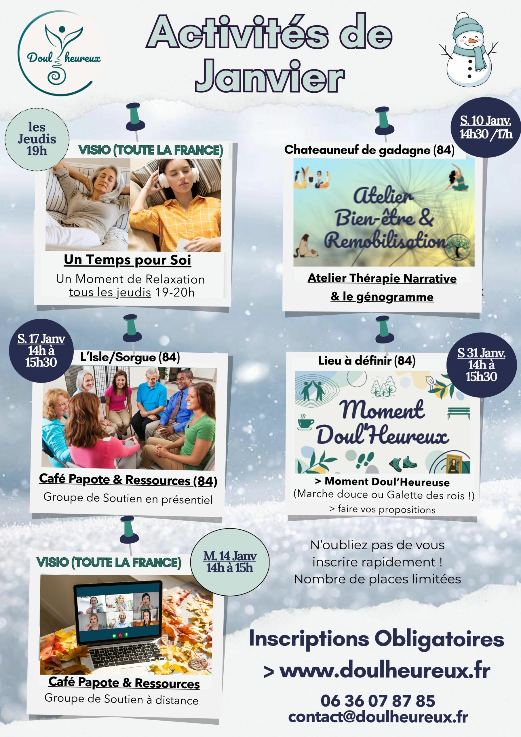 ✔ Certaines sont gratuites pour les adhérents et avec participation pour les non adhérents (ex. visio relaxation).